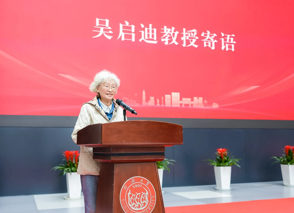许学军首先代表学校对吴启迪老校长以及各位校友持续捐资注入启迪奖学金表达由衷的感谢和崇高的敬意,并对所有获奖学子表示热烈祝贺。他指出,在吴校长的持续关心和推动下,启迪奖学金的影响力和覆盖面不断扩大,激励着越来越多的优秀学子积极弘扬和传承追求真理、奋发拼搏、锐意进取、开拓创新的启迪奖学金精神。在117年砥砺奋进的办学历程中,同济为国家、民族培育了无数的优秀人才,这背后是吴启迪老校长等一代代教育家以初心如磐的责任感和信念感为党育人、为国育才,推动学校的重要办学指标和整体实力不断迈上新台阶。站在新一轮科技革命与产业变革深入发展的历史节点,希望各位获奖学子能够肩负起时代赋予的使命,心怀大我,志存高远,在“数智化、绿色化、融合化”的创新征程中勇当排头兵,以专业赋能助力“同济智慧”在各个领域闪耀光芒。