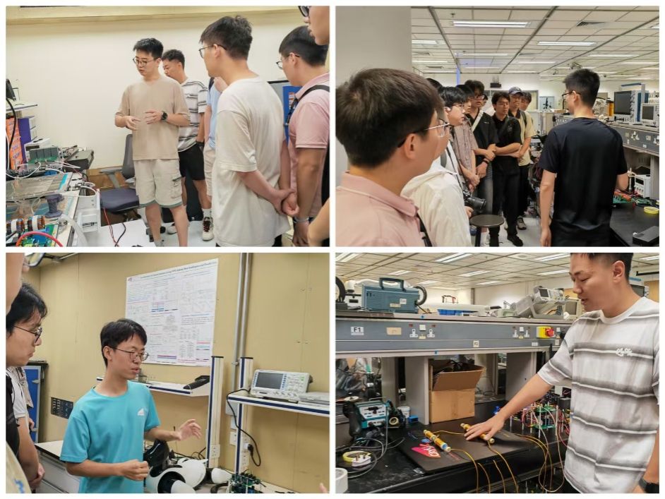 在博士生团队的带领下,师生们实地参观了各实验平台,深入了解采用自研纳米晶材料的22kW汽车无线充电系统、面向无人机的80g轻量化无线充电方案以及基于互感检测的智能能效调控系统等最新研究成果。