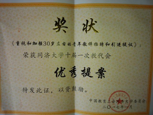 丁志军代表提案获同济大学十届一次教代会优秀提案