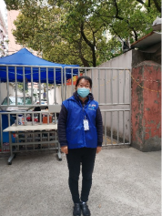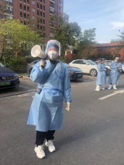 图3.王翠霞(左1)、李翠玲(中)、倪向红(群众)自3月14日居家以来多次担任社区核酸(抗原)检测志愿者
