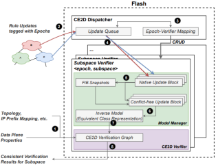 网络数据平面验证是减少网络服务中断的一项基本而重要的技术。针对在大规模网络验证系统现在面临的在短时间内处理大量数据平面更新和验证系统功能迟滞的关键挑战。Flash创新性地提出两项新技术实现大规模网络中的高效数据平面验证:对于更新风暴,Flash提出快速逆模型变换(Fast IMT)技术实现大量数据平面更新的聚合处理;对于长尾更新情况,Flash提出一致性提前检测(CE2D)技术,可以在保证一致性的前提下提前做出验证决策而无需等到网络收敛。