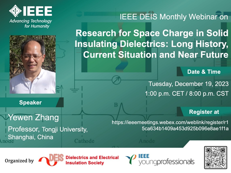 电气工程系张冶文教授作了主题为《Research for Space Charge in Solid Insulating Dielectrics: Long History, Current Situation and Near Future(固体电介质空间电荷研究:历史、现状及未来)》的全球直播网络报告。该网络报告会由IEEE电介质与电气绝缘协会和IEEE青年专家组联合主办,邀请全球电介质与电气绝缘领域顶级专家介绍前沿进展,分享科研经验。本次报告吸引了来自全球工业界和学术界的专家和教授报名和在线观看。