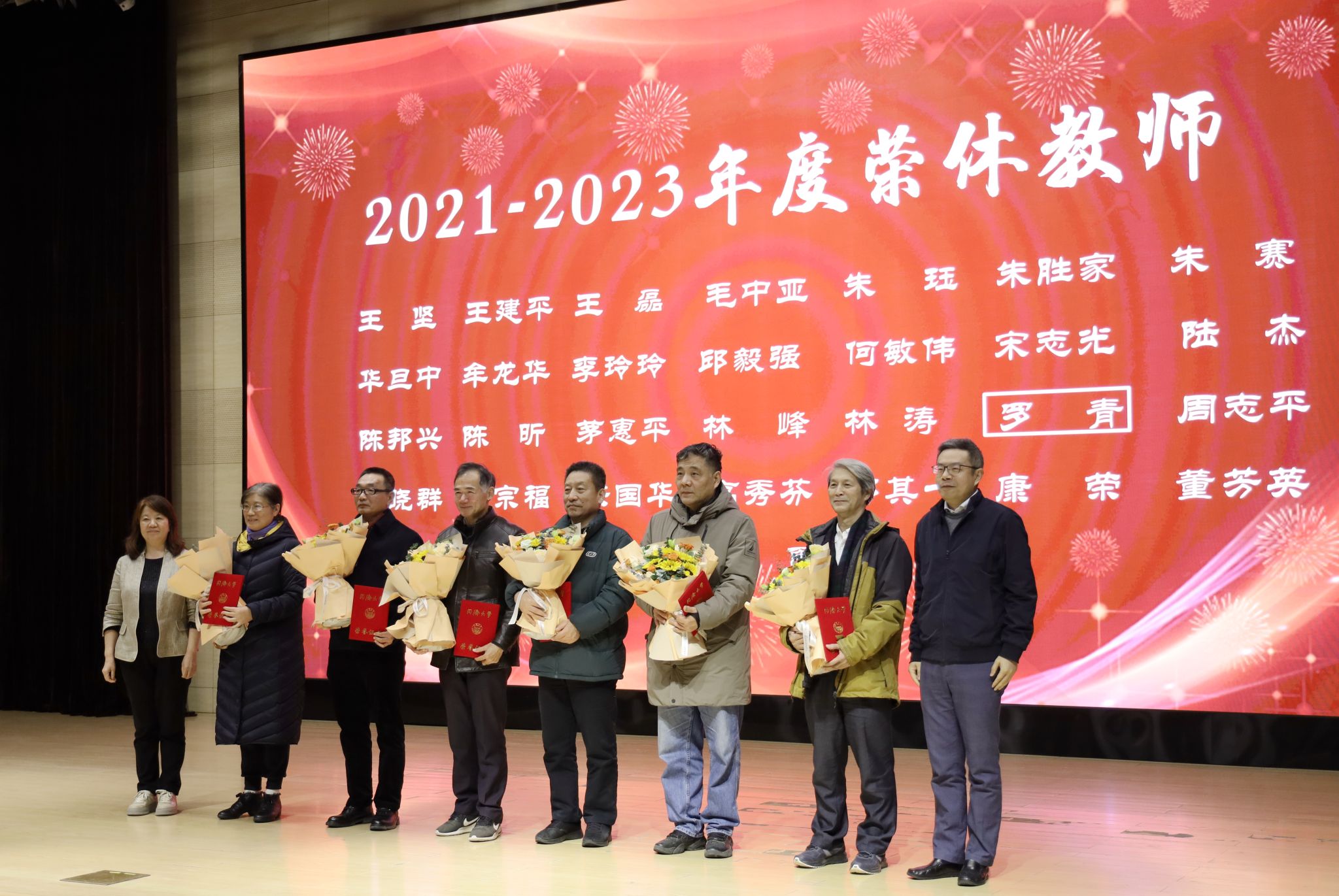 的发展与成绩离不开一代代电信人的无私奉献和奋斗,会上特别举行荣休仪式,向退休教师致敬及感谢。宋志光、陆杰、陈邦兴、赵晓群、胡宗福、董芳英老师作为代表上台领奖,院长、书记为老师们送上荣休证书和鲜花,感谢大家为雪缘园足球比分