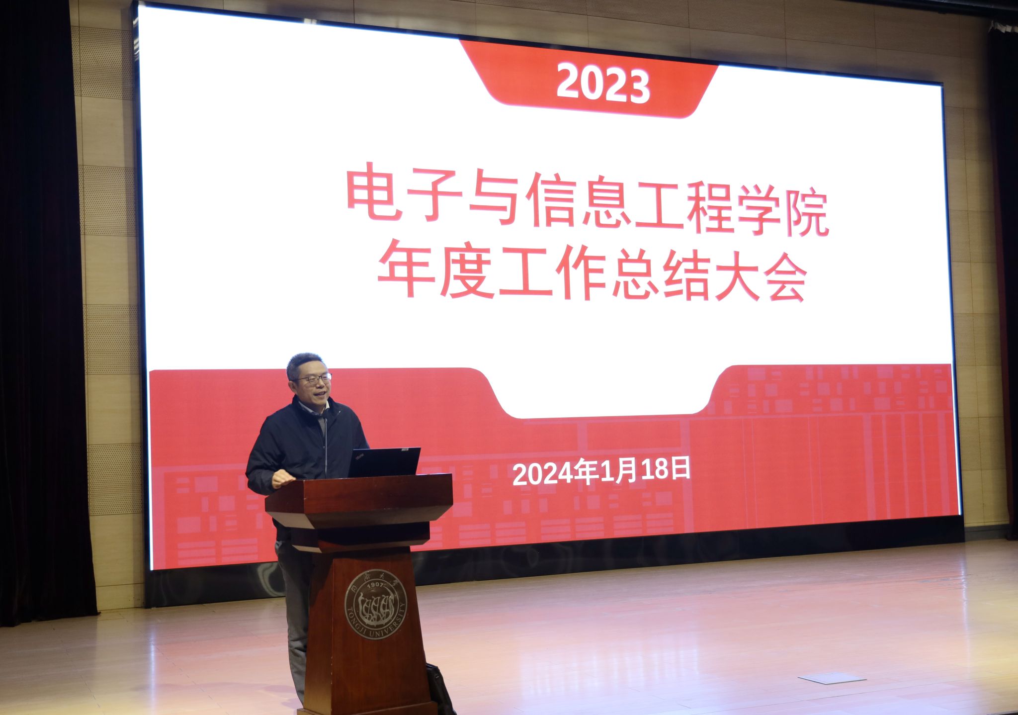 在嘉定校区济人楼101报告厅召开2023年度工作总结大会,大会由党委副书记王瀚漓主持。