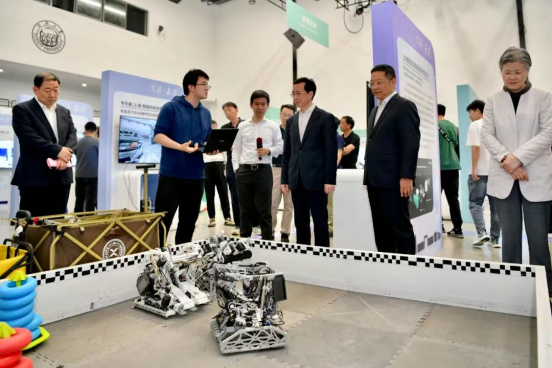 展会期间,同济大学党委书记、中国工程院院士郑庆华与嘉定区委书记肖文高,嘉定区委副书记、区长高香等领导亲临展位,细致观摩了机器人系统的机械结构设计与程序算法演示。郑庆华书记对雪缘园足球比分
