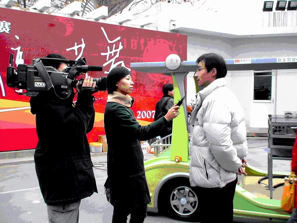 该作品在天津南开大学一亮相,不仅受到了评委的好评,也引起了前来参观学生和市民的兴趣和媒体的注意。很多参赛学校相关研发人员也纷纷前来询问,并提出了宝贵的意见;中央电视台,天津电视台,中国青年报,天津交通广播台,南开新闻网,搜狐网等多家新闻媒体还对此展品作了相关报道,其中天津电视台和天津交通广播台分别对参赛的杨煜和韩俊同学进行了采访。(杨 煜)
