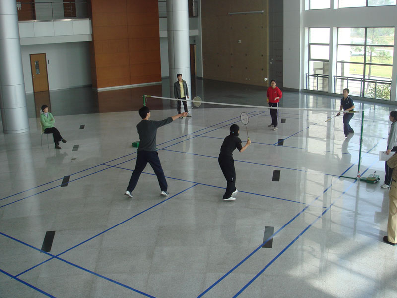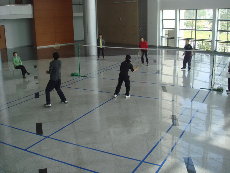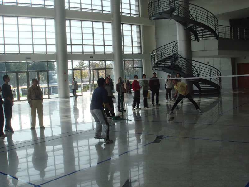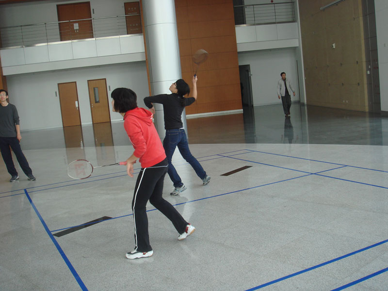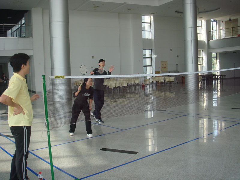 羽毛球队与嘉定校区管委会羽毛球队举办了团体对抗赛。比赛进行了男女单打、男女双打、混合双打5个项目,嘉定校区管委会羽毛球队以3:2战胜雪缘园足球比分