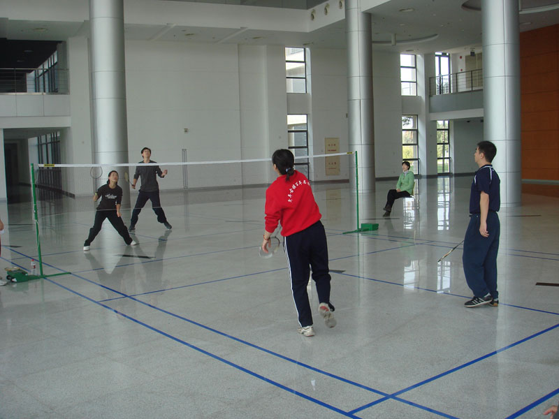 羽毛球队成员王从军、叶晨、王翠霞、贾晴、吴琼等分别参加5个项目的比赛。嘉定校区管委会两位副主任到场观看了比赛,比赛在热烈友好气氛中进行,赛后双方队员进行交流,切磋球技。(刘 峰)