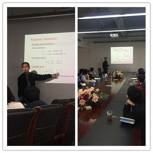 师生们作了题为“Problem of Estimation in nonlinear systems: a contraction approach”的学术报告。 该报告主要讨论了系统模型的参数估计和非线性动态系统不可测量的状态估计问题。