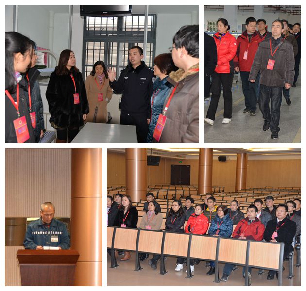 走进厚重的大门,首先映入大家眼中的是悬挂着的庄严国徽,配合周围铁丝网,高墙上的电网,显示出特殊的地方——监狱。在监狱干警的带领下,大家先后参观了在押犯人的生活区、犯人用餐的食堂、劳动的车间以及正在干活的现场,最后大家观看了五角场监狱介绍录像,参加了警示教育报告会。