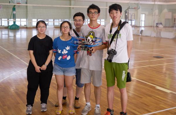 电子信息与技术专业,在创新基地蒋磊老师的指导下,经过数月的训练准备,完成了基于机器视觉的自主导航四旋翼无人机。该无人机能够自主识别摄像机视野中的图形地标,自主规划飞行线路,完成竞赛规定的飞行动作。本作品采用Intel高性能处理器为计算核心,运用机器视觉算法识别的视野图像中的地标形状,并结合机载惯性导航模块规划飞行线路;无人机飞行姿态控制模块为基于TI高性能微控制器自主开发的软硬件部件,能够采集融合多种传感器信号,实现了稳定的飞行姿态控制。(蒋磊)