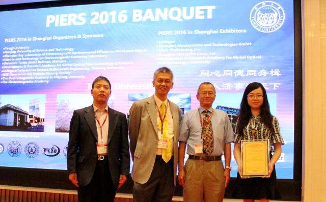电子科学与技术系2014级硕士研究生陈文杰受邀参加在上海举办的国际著名学术会议“The 37th Progress in Electromagnetics Research Symposium (PIERS)”(第37届电磁学研究进展国际研讨会)”, 她在专门设置的“Competition for the Best Papers of Students(学生最佳论文竞赛)”分会场作了题为“Time-Domain Analysis for Transient Electromagnetic Scattering by Conducting-dielectric Objects(导体介质混合体的瞬态电磁散射时域分析)”的口头报告,受到竞赛评委和听众的好评,事后被多位国际著名教授誉为“interesting work”及“excellent job”。该论文是陈文杰同学在系主任童美松教授精心指导下完成并在今年三月份投稿、四月份正式接受的。论文内容事先经过三位专家盲审,入围后再由第一作者(学生)在分会场作口头报告,评委由四名相关领域的国际著名学者担任,他们根据论文内容盲审结果和现场口头报告及答辩质量进行打分评审,最终该论文被评为最佳学生论文奖第二名并在颁奖晚宴上授奖。