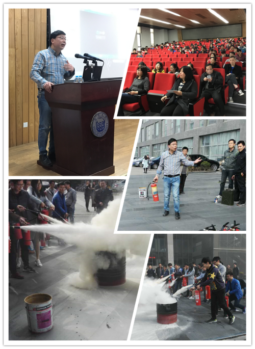 祝科长指出保全生命是保持身体健康的前提,他通过图片、视频等形式,为在场师生展示了一个个真实、沉痛的火灾事实,用真诚朴实的话语告诫大家提高自身安全意识,加强安全隐患检查的重要性。随后,他结合示例阐释了“火灾的定义”、“校园火灾带来的思考”及“防火基本知识”等内容,并通过现场展示为大家介绍了灭火器的种类和使用方法。