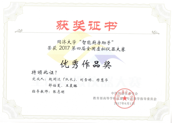 不同专业的同学组建,队员包括陈奕杰(队长)、刘念、刘吉喆、曹志杰、金静,指导教师为控制科学与工程系张志明老师。此外,由赵闻达(队长)、刘雪娇、穆慧华、邵谣夏、王晨璐组成的“HdIT”队和由仲大伟(队长)、李静楠、张宁、孔艺组成的“智芯小组”队,其参赛作品“智能垃圾桶”和“智能厨房助手”,获得创意孵化组的优秀奖。