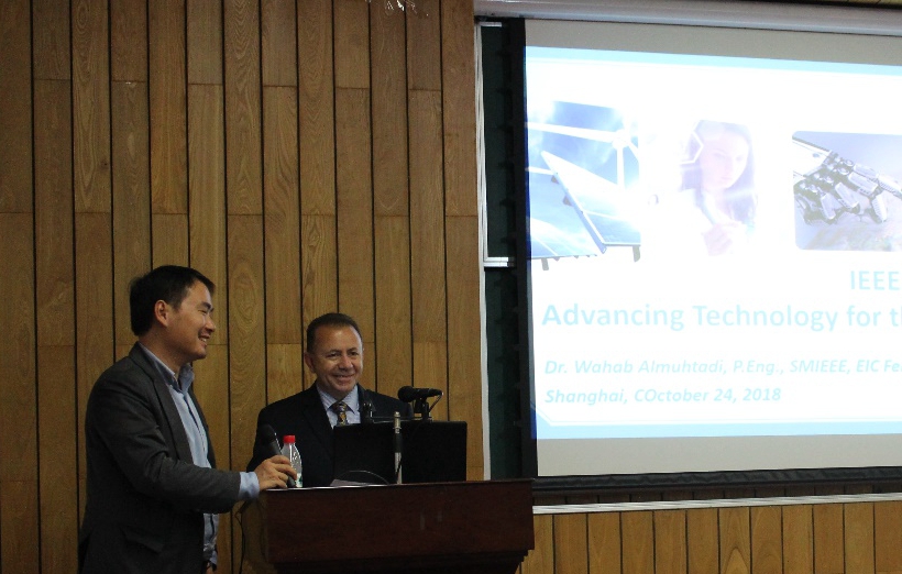 对合作双方表示了欢迎和祝贺,并希望本项科研合作能够促进人工智能学科发展和国际化高端人才交流。上海市人工智能学会理事长张浩教授和IEEE消费电子学会会长Sharon Peng博士签署了合作备忘录。Wahab Almuhtadi博士介绍了IEEE 消费电子学会。袁昱博士则为师生讲解了了IEEE标准制定及应用过程。Sharon Peng博士介绍了IEEE未来发展方向及人工智能技术在消费电子的应用前景。