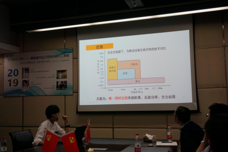 的张清清博士,张清清博士是2016级博士生,2018年校级博士生奖学金获得者,研究方向为共振光无线传能,目前已发表会议论文1篇,一区论文4篇,其他二作论文数篇。现在正在申请去明尼苏达大学的联合培养博士生。张博士与大家共同探讨了 “共振光无线充电”这样一个相对较新的研究领域,打破了目前人们对电子产品充电形式的认知,替代有线或无线充电板的充电方式,使用“共振光束”实现区域内自动充电模式。目前该技术在国内还未实现,但已经在以色列投入使用,证明该技术的可行性。