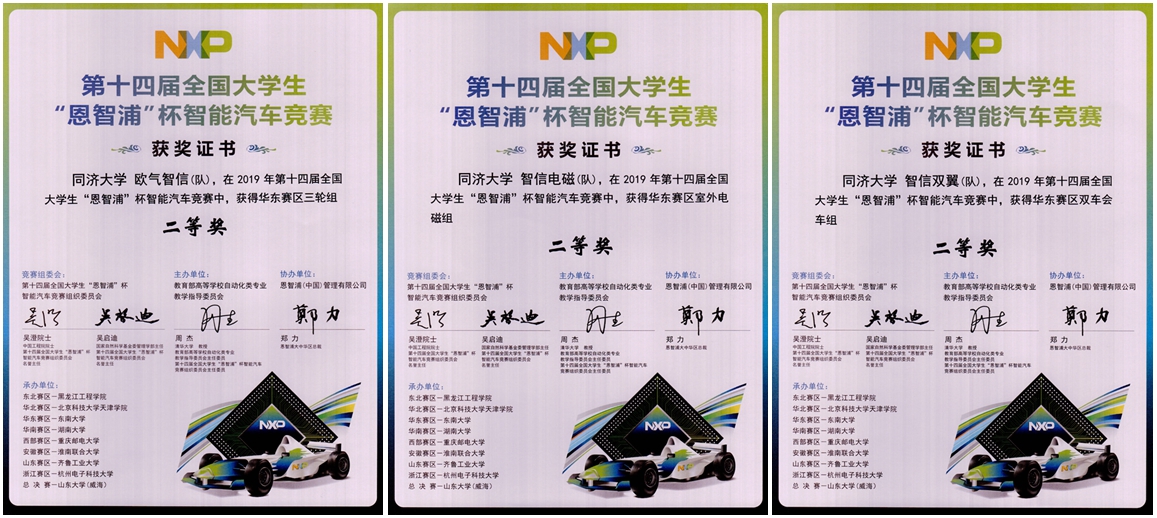 大学生智能汽车竞赛实验室集训和选拔,最终赢得同济大学校内赛竞速赛全部组别的出线资格,组建六个组别的队伍代表同济大学参赛,并在华东赛比赛中有所收获。其中,张施皛(自动化)、唐天宇(通信工程)、吴怡婧(通信工程)三位同学组成的“智信电磁”队取得室外越野电磁组二等奖;项天宇(自动化)、龚海松(自动化)、徐润东(电气工程及其自动化)三位同学组成的“税驾蘅皋”队取得小白四轮组二等奖;欧锐(电气工程及其自动化)、王佳雯(计算机科学与技术)、李俊贤(电气工程及其自动化)三位同学组成的“欧气智信”队取得变形金刚三轮组二等奖;赵文瑞(电气工程及其自动化)、陈豪(自动化)、申炳琦(自动化)三位同学组成的“智信·红色闪光”队取得横冲直撞信标组二等奖;刘昊(自动化)、张米(电气工程及其自动化)、韩立君(自动化)三位同学组成的“智信节能”队取得无线节能组二等奖,并取得全国总决赛资格;李伟博(电子科学与技术)、高贺惟(自动化)、翁锦煜(电子科学与技术)、叶琪(软件工程专业,软件雪缘园足球比分