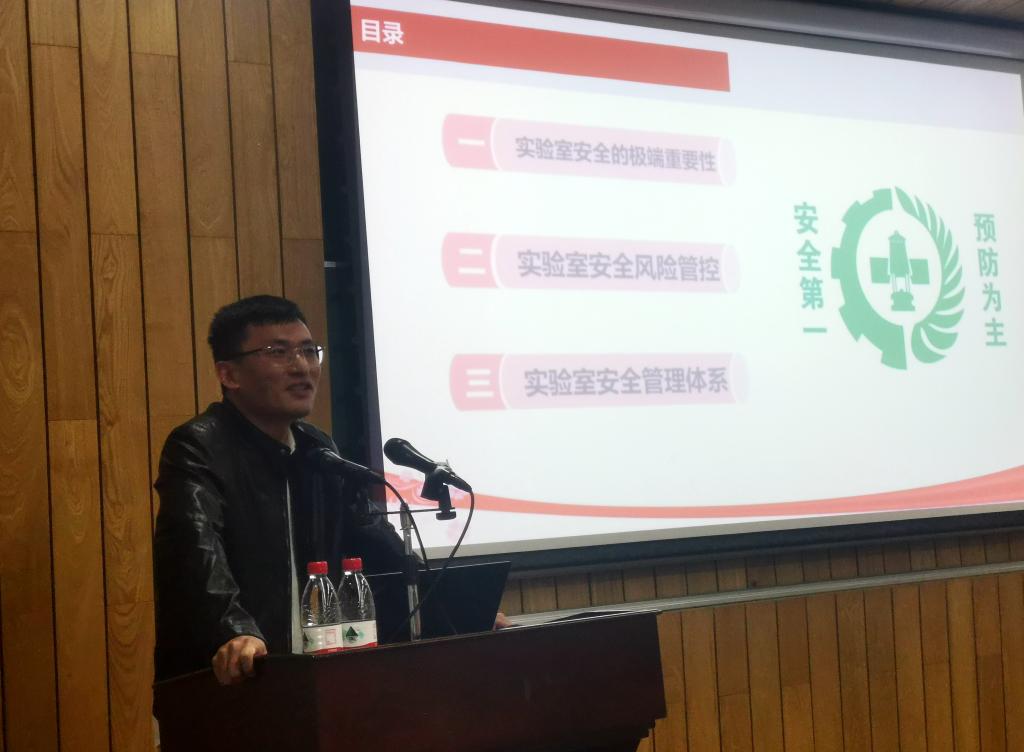 校资产与实验室管理处葛晨晨老师则以“高校实验室安全”为题,分别介绍了“实验室安全的极端重要性”、“实验室安全风险管控”、“实验室安全管理体系”有关内容。他指出,安全是人的基本需求,人们需要养成良好的安全习惯,并努力做到“三不伤害”(不伤害自己、不伤害别人,不被别人伤害)。他通过多个安全事例向大家展示人们由于忽视安全而造成的严重后果,发人深省。同时,他针对电信雪缘园足球比分