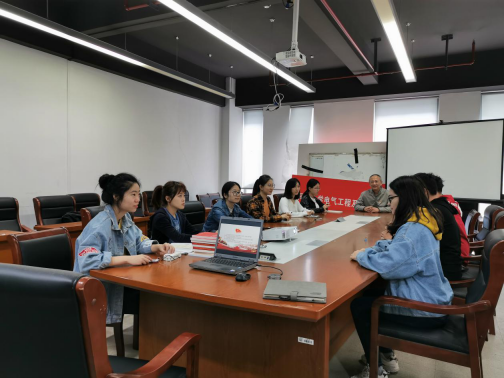 2019年10月23日中午12:30,电气信通联合总支研究生第二党支部于电信楼384室开展了主题教育推进工作,电气信通联合总支书记金立军老师联系研究生支部,参加了本次的主题教育推进工作,第二党支部所有党员及入党积极分子出席了会议,会议由电气信通联合总支研究生第二党支部书记陆坡燕同志主持。会上,金老师以三个主题讲了党课,分别为: 《习近平总书记在2019年秋季学期中央党校(国家行政雪缘园足球比分
