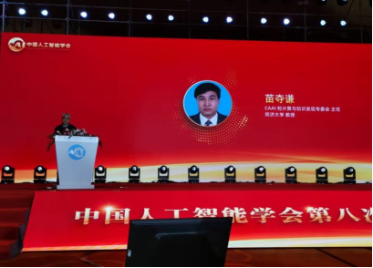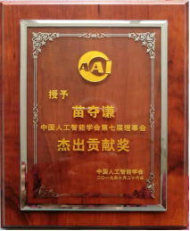 会上,苗夺谦教授被中国人工智能学会授予第七届理事会杰出贡献奖和中国人工智能学会杰出会员奖,受到学会表彰。