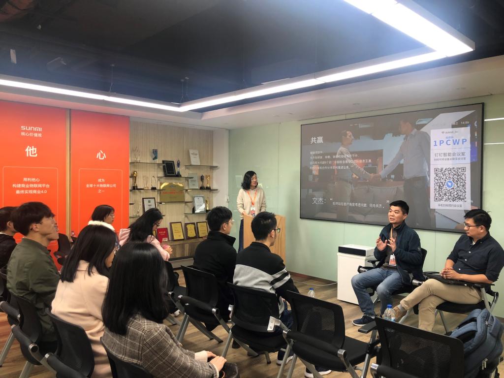 计算机联合党总支组织学生赴商米科技公司开展企业Open day活动。活动初始,商米公司人力资源工作人员为大家简要介绍了公司基本情况,商米科技成立于2013年,是小米生态链中唯一ToB的创企。该公司全球化业务发展飞速,每年以300%的速度增长,目前基于TO B场景的智能终端设备已经覆盖全球100多个国家或地区,有数百万客户在使用商米的智能设备。主要客户有阿里、腾讯、百度、美团、小米、京东、永辉、苏宁、兴业银行、JustEat、Yelp、Grubhub、Line等知名企业。商米公司秉承着让全体员工在物质与精神上获得幸福感的理念,努力践行用“利他心”构建商业物联网平台,实现商业4.0。
