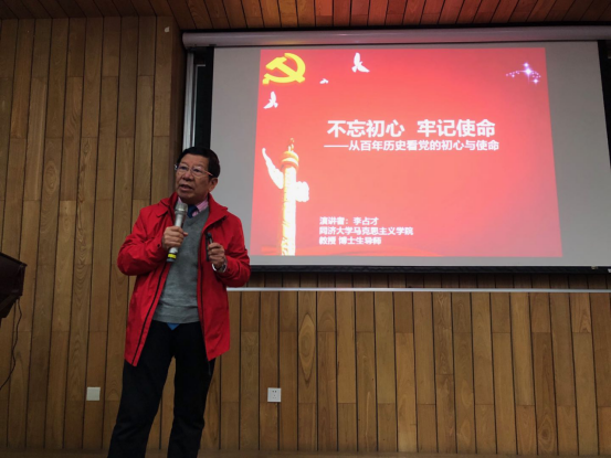 “共产党的初心和使命是什么?”李占才教授首先以这个中心问题切入主题。随后,李教授用激情昂扬的讲解、通俗易懂的语言、丰富详实的案例阐述了中国共产党人的初心和使命就是“为中国人民谋幸福,为中华民族谋复兴”!