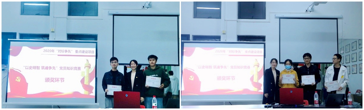 本次“四史”知识竞赛以赛促练,以考促学,帮助党员理清历史脉络、把握历史规律,在支部中营造了“知史爱党,知史爱国”的良好学习氛围,同时也增强支部间的沟通交流,初步构筑了学生党支部共建平台。希望广大党员同志继续坚持努力,不忘初心,牢记使命,在祖国广阔的天地中,不断钻研进取,奋发有为,争做一名优秀的共产党员。(文/郑永飞、孔佳莹 图/洪佳升)