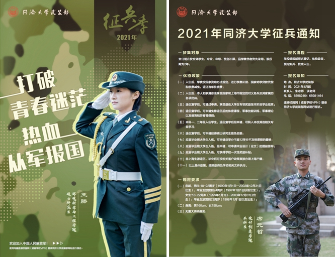 将会针对性地组织开展征兵政策宣讲暨动员、退伍大学生事迹分享以及退伍毕业生校友生涯分享等专题活动,邀请同学们积极参加。也欢迎有志青年投身军营,用自己的青春为强军梦和中华民族伟大复兴的中国梦贡献自己的智慧和力量!(图/学校武装部,文/汤若琦)
