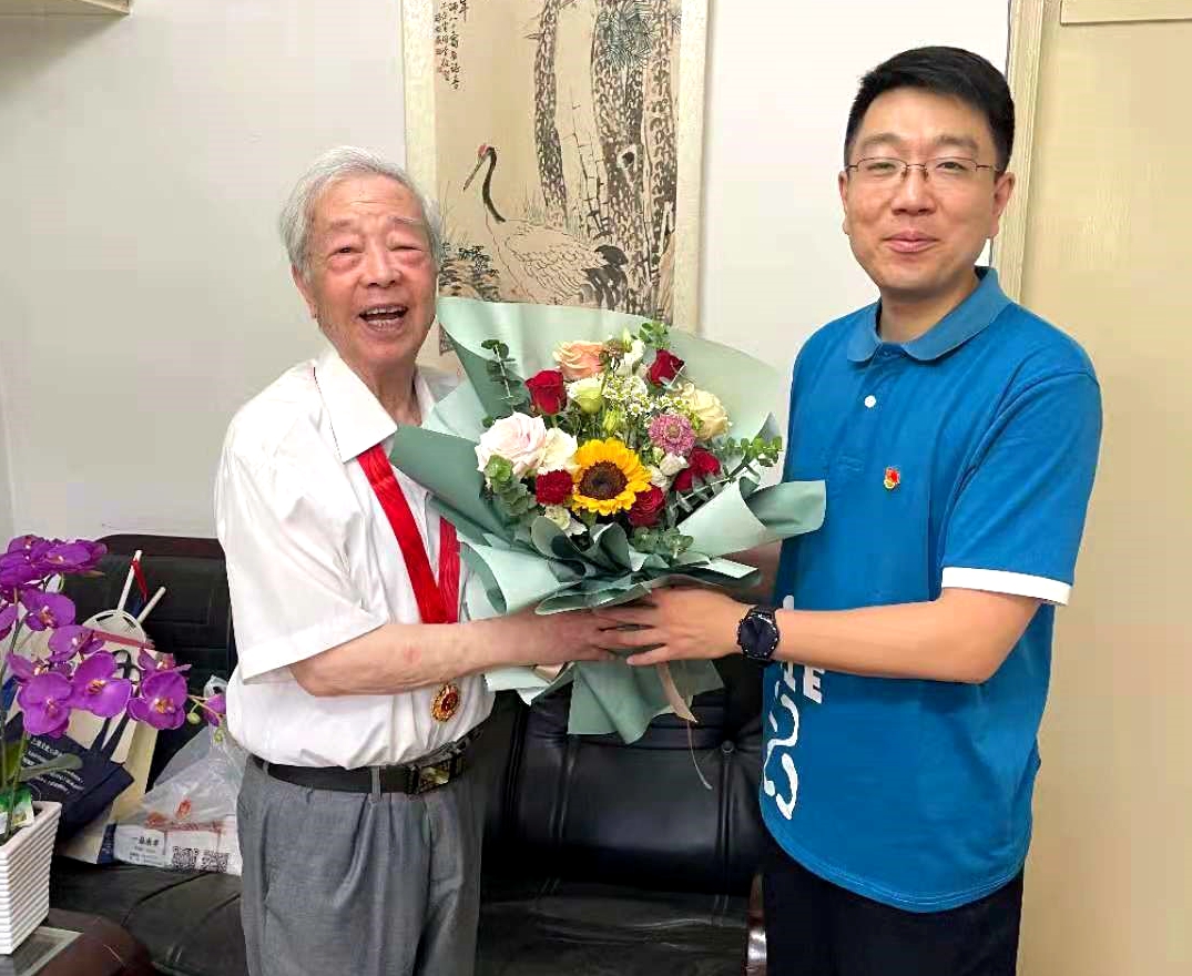 党委组织员孙世琳上门走访慰问了获颁纪念章的退休党员代表徐衍华同志。徐衍华同志于1953年7月进入同济大学工作,1956年12月加入中国共产党,1958年创建了“工业企业电气化”专业并任教研室主任,曾任电气工程系副主任、校外事处处长,于1995年退休。在校期间培养了一大批优秀教师和学生,退休后严格要求自己,主动学习党的各项文件和政策,积极参加党史教育学习活动。