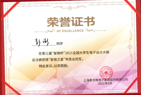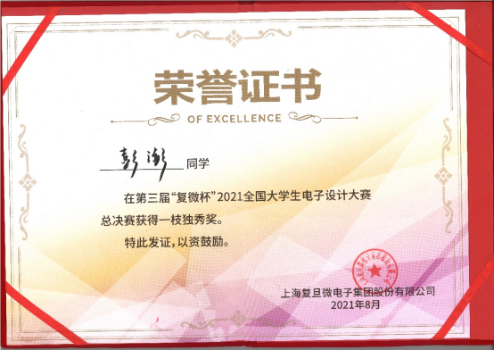 “复微杯”是一项大学生科技竞赛活动,该竞赛聚焦于微电子细分领域,赛题内容紧贴学界研究前沿与业界真实需求,专业性强、挑战性大。竞赛目的在于加强对大学生动手能力的培养和工程实践的训练,提高学生针对实际问题进行电子设计、制作的综合能力,培养大学生的创新能力、协作精神;吸引、鼓励广大学生踊跃参加课外科技活动,为优秀人才服务社会发展创造条件。彭澎同学本硕博均就读于雪缘园足球比分