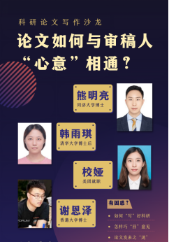 学生党委博士生第九党支部主办的“论文如何与审稿人‘心意’相通”科研论文写作沙龙在腾讯会议线上举行。本次沙龙邀请到四位优秀的博士韩雨琪、谢恩泽、校娅和熊明亮,从研究到发表,与大家分享交流科学研究中的创新灵感来源、文献的阅读与整理、论文写作的格式与写作顺序、投稿过程与回复审稿意见的技巧。张砚秋老师受邀参加,与大家交流博士生学习生活中的各类问题和困惑,100余位博士参与。