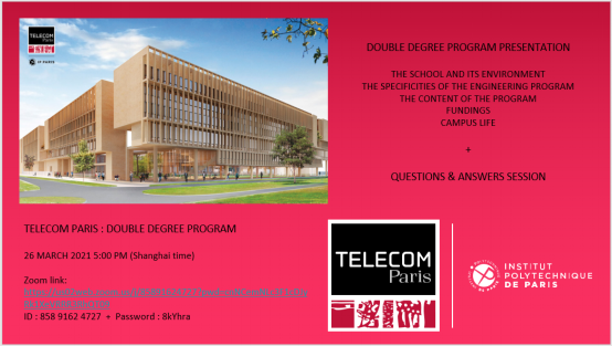 法国巴黎高科-国立巴黎高等电信学校(Télécom ParisTech)双文凭项目线上招生宣讲会
