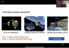 ,担任中德智能科学与技术中心德方副主任。他在报告中主要介绍使用机械臂的空间系统,尤其是轨道系统的应用和技术挑战。然后介绍了几种航天器的类型,包括质点、刚体以及多体等。其次对几类航天器的运动模型以及实验结果进行介绍与分析。接着介绍了空间系统中机械臂的运动模型以及技术安全的验证实验。最后回顾了轨道操纵器和行星机器人的发展历程。