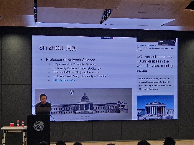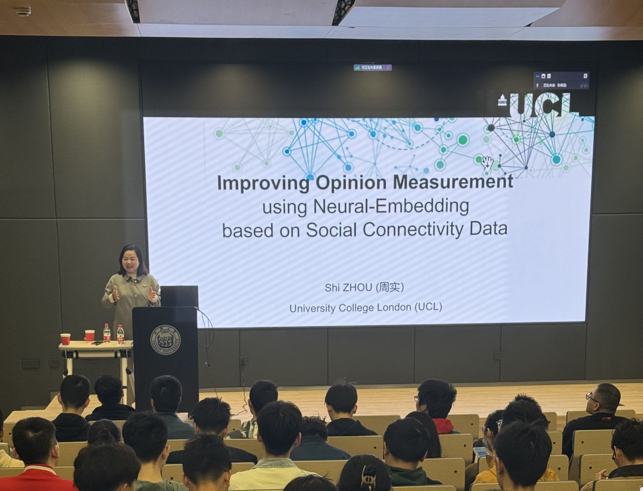 周实教授作“Improving Opinion Measurement using Neural-Embedding based on Social Connectivity Data”主题报告,由张皓教授主持。