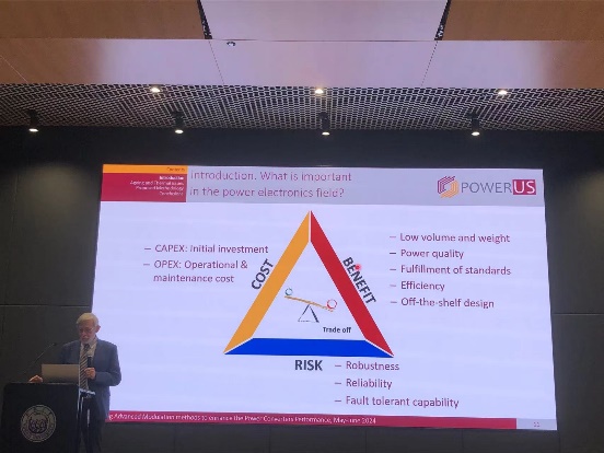 首先,Jose I. Leon教授介绍了塞维利亚大学以及其科研团队的基本情况。然后, Leopoldo G. Franquelo教授介绍了功率转换器优化的五个方面,包括功率器件的物理老化、电力电子元件、主动热控制方法、电力电子应用及谐波分析。接着,Leopoldo G. Franquelo教授从代价、收益及风险三个方面阐述了电力电子领域的重要性并介绍了太阳能光伏发电系统和太阳能光伏转换器的故障。他还分析了功率设备中的热行为,包括功率半导体和电容器中可能发生的热问题(以电机驱动器及中央光伏转换器为案例)。进一步,Jose I. Leon教授通过分析模块化转换器的特点,提出一系列基于改进的PWM技术的先进调节方法来解决模块化转换器案例中的一些热问题。最后,Jose I. Leon教授总结了工业界解决功率转换器相关热问题的特点并提出了改进功率转换器性能的先进调制方法的未来发展方向。