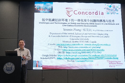 、同济大学上海智能科学与技术研究院联合举办的智·信讲堂第74期在智信馆117报告厅开讲。本次讲堂邀请加拿大康考迪亚大学张友民教授作“Challenges and Technologies on Safety and Security (S&S) Issues in Low-Altitude and Low-Carbon Economic Environments”主题报告,由张皓教授主持。