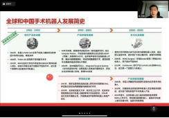齐鹏副教授分别从医疗机器人的发展、医疗自动化行业发展以及人工智能技术赋能现代医疗等方面展开报告。报告中,他主要介绍了医疗机器人的分类和背景、手术机器人的分类、全球和中国手术机器人发展简史以及不同自主性分级下医疗机器人的发展历程;然后介绍医疗自动化行业的发展能够极大程度地简化工作流程,降低人工失误;分析了医疗自动化中搬运和夹取过程不同方案的痛点;接着就医疗自动化技术对新冠病毒肺炎疫情的核酸检测过程带来的好处与便利进行介绍,最后分析了人工智能技术的发展对现代医疗起到的重要作用并介绍人工智能技术在未来如何赋能医疗行业。齐鹏副教授丰富精彩的报告为学校师生的学习和科研工作带去了思想启发,为同学们了解医疗自动化、智能化等提供了有益指导。