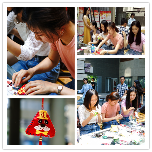 自制香囊环节可以让大家零距离感受传统文化的魅力。此次活动香囊的原材料均由电气信通联合党总支研究生支部提供,香囊的颜色缤纷鲜艳,并以菖蒲填充,外表是可爱的卡通动物形象,赢得了大家的喜爱。很多同学亲自缝制了各种颜色的香囊,并作为端午礼品赠送他人,为大家的学习生活带来一抹芬芳。