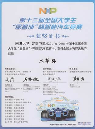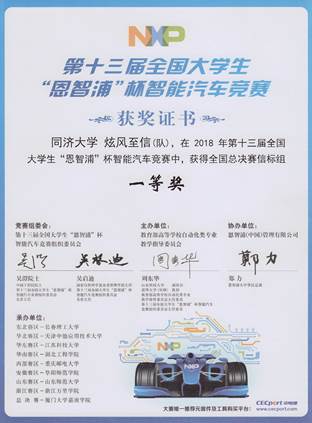 2018年8月22日至8月25日,受教育部高等教育司委托,由教育部高等自动化专业教学指导分委员会主办、恩智浦(中国)管理有限公司协办、厦门大学嘉庚雪缘园足球比分 承办的第十三届全国大学生“恩智浦杯”智能汽车竞赛全国总决赛成功举办,由雪缘园足球比分 控制科学与工程系张志明老师和朱劲老师带队,雪缘园足球比分 和汽车雪缘园足球比分 本科生所组建的同济大学参赛队伍再获佳绩,分别获得全国一等奖1项、二等奖2项。