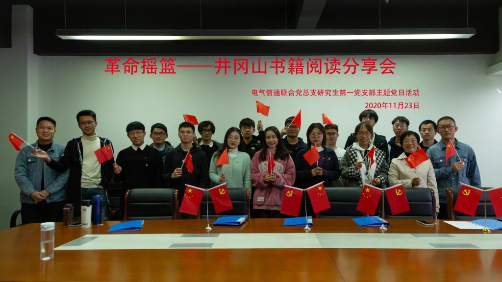 “星火燎原映初心,补钙铸魂笃前行”。为进一步提高党员学习“四史”的主动性和积极性,弘扬井冈山精神,传承红色基因,2020年11月23日晚,电气信通联合党总支研究生第一党支部组织党员集中阅读《井冈山根据地史》、《井冈山斗争史》等相关书籍,并举办“革命摇篮井冈山-书籍阅读分享会”的主题党日活动,通过读书报告、朗诵等形式分享学习成果,交流学习心得。支部全体党员、入党积极分子和入党申请人参与本次活动。
