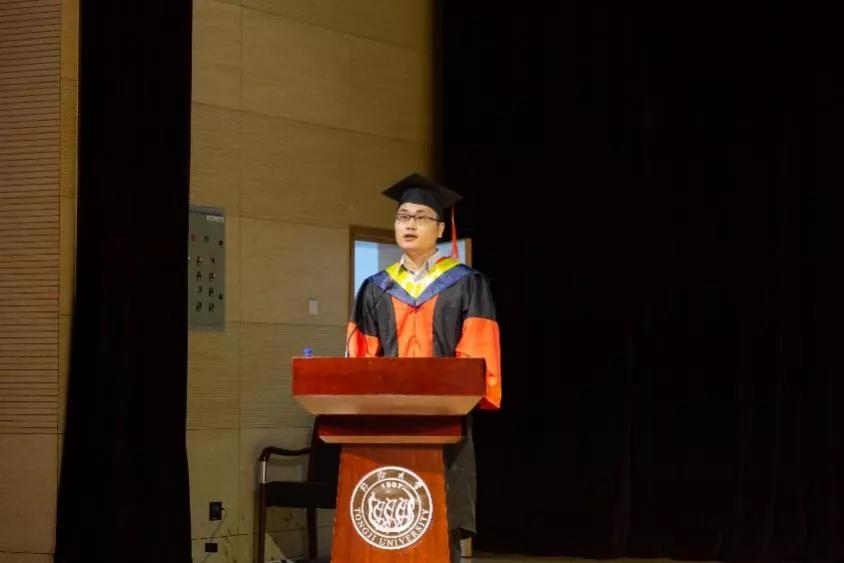 控制科学与工程系岳继光教授作为导师代表发言。他号召毕业生们无论身处哪个行业,都要带着同济大学的金色招牌,扬起青春的激昂慷慨,坚守“济人济世”的广阔胸怀,与祖国同行,以科教济世。在国家绿色电网的建设中,书写家国情怀;在高端芯片的攻坚中,书写大略雄才。同济人薪火相传,继往开来,开创属于自己的新时代。