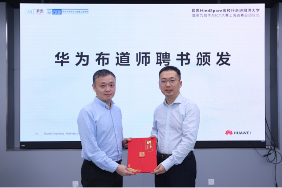 副教授齐鹏颁发华为布道师聘书。华为生态专家为大家分享了第九届华为ICT大赛中国赛最新介绍以及昇思MindSpore赛题解读。