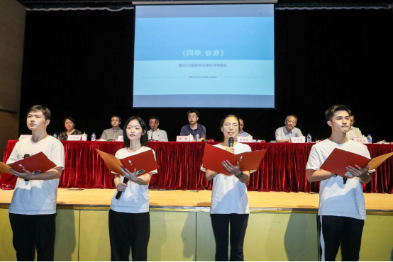 随后,2020级计算机科学与技术系的江心雨作为新生代表发言,代表全体研究生新生祝老师们节日快乐,提醒新生们问问自己为什么要读研,为什么要到同济读研,曾经的鲜花和掌声都将封存在过去;提到读研的向往和担心,号召新一代同济人,在未来的时光里,与祖国同行,与同济同行,为同济之卓越而奋斗,为中华之崛起而奋斗。
