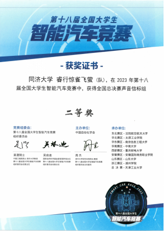2023年第十八届全国大学生智能汽车竞赛全国总决赛(天津)获奖证书