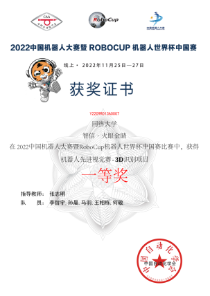 /智能制造工程)、马羽(自动化)、王相栋(自动化)、何敬(控制科学与工程)五位同学组成,由控制系张志明老师指导。在备赛条件受限的情况下,队员们依旧积极备赛,勇于挑战,在上届参赛基础上进行了数据扩充及筛选、提升算法识别准确率和鲁棒性、模型部署和设备调试等工作,最终获得国赛一等奖(全国八强)。