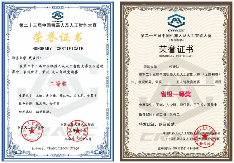 2021年12月11日,由中国人工智能学会、重庆两江新区管委会联合主办的第二十三届中国机器人及人工智能大赛,在重庆两江协同创新区采取线上线下两种方式同期开启巅峰对决。该项赛事新列入中国高等教育学会发布的《全国普通高等学校学科竞赛排行榜》。同济大学三支队伍总决赛发挥出色,获得全国一等奖、二等奖和三等奖各1项。