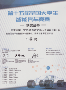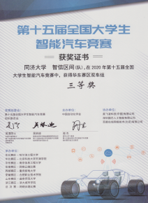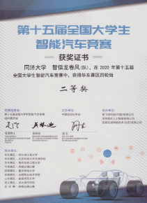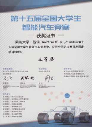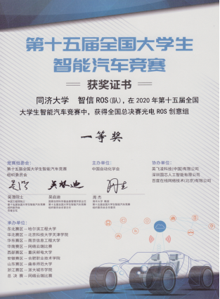 大学生智能车竞赛实验室组建的两支队伍先后在各自组别的预赛中杀出重围,成功晋级,代表同济大学参加线下现场总决赛。其中“智信ROS”队在ROS光电组国赛预决赛中以18.69秒成绩排名第9,在一等奖排位赛中因车模齿轮机械故障遗憾未能发车,最终排名11(全国一等奖),队员:赵师兵(自动化)、郭展羽(自动化)、贺兰山(自动化)、郑家齐(通信工程),指导教师:张志明、余有灵;“智信•GRAPfruitE”队在深度学习组总决赛比赛中取得全国三等奖,参赛队员:陈麒宇(通信工程)、党荣浩(自动化)、张天成(通信工程);指导教师:张志明、朱劲。