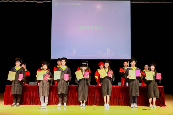 ▲为毕业生代表颁发毕业证书、学位证书